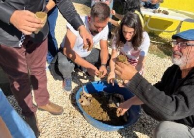 And then this: there were still about 50 people there when we made and dug in the preparations with great joy and enthusiasm. The most impressive moment was when we filled the horns with cow dung. The cows of the farm gave us wonderfully shaped patties. There were over 100 horns waiting to be filled. And people did it with their bare hands, without gloves or spoons, no with their hands! And they filled the horns with their extraordinary energy and devotion: what a wonderful preparation was created!